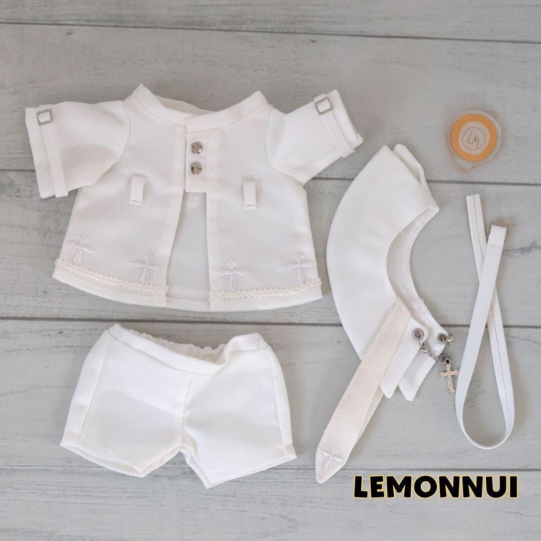 20cm ぬいぐるみ服 着せ替え ぬい服 白 牧師服 推し活 推しぬい 綿人形 棉花娃娃 ちびぬい服 ちびぐるみ コットンドール cotton doll-E046