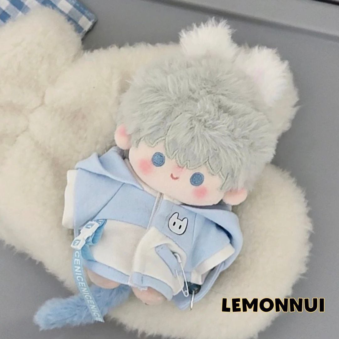 10cm 着せ替え ぬいぐるみ服 ちびぬい 推し活 推しぬい パーかー ねこ ブルー 綿人形 棉花娃娃 ちびぬい服 ちびぐるみ コットンドール 綿人形 cotton doll-E058