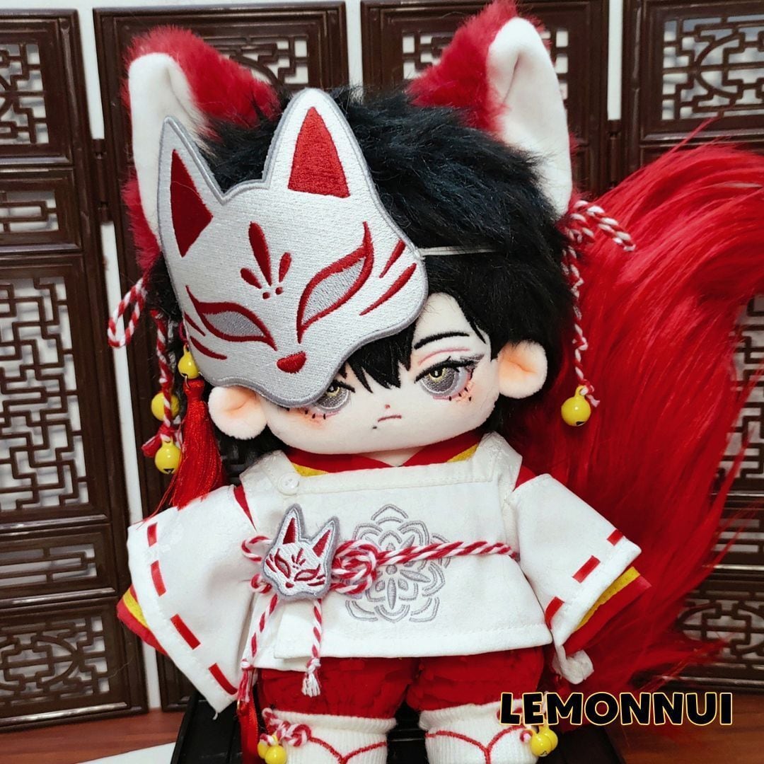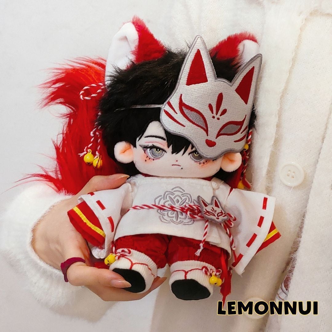 20cm ぬいぐるみ服 着せ替え キツネ マスク 尻尾 激かわ ぬい活 推し活 推しぬい 綿人形 棉花娃娃 ちびぬい服 ちびぐるみ コットンドール cotton doll-E069