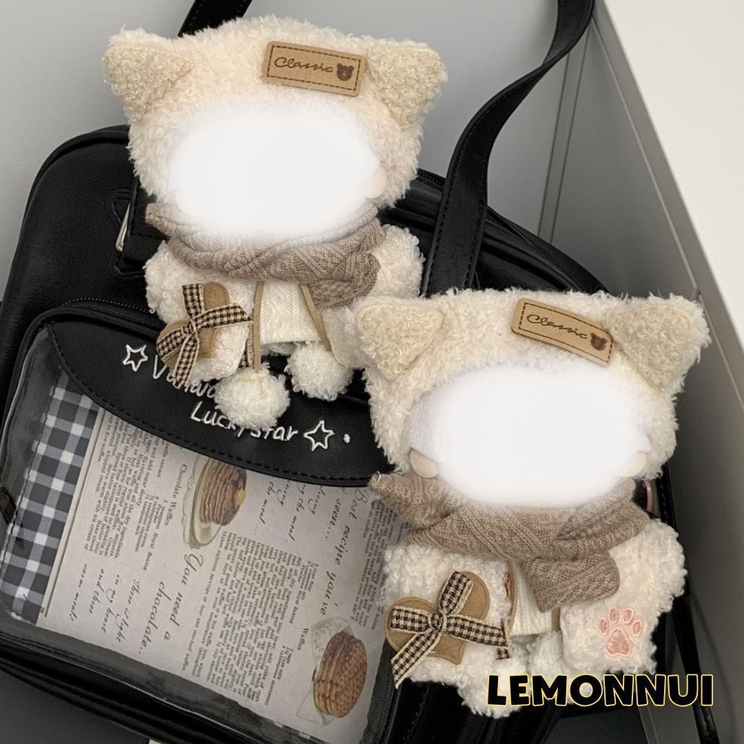 10cm 着せ替え ぬいぐるみ服 ちびぬい 推し活 推しぬい フルセット ねこ ブルー 綿人形 棉花娃娃 ちびぬい服 ちびぐるみ コットンドール 綿人形 cotton doll-E072