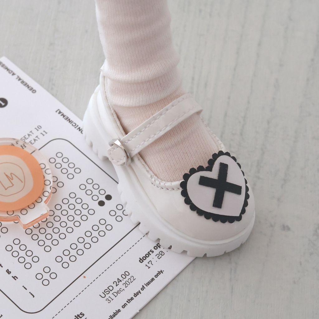 1/4 ドール用 靴 シューズ 地雷系 量産型ハート ストラップ ホワイト メリージェーンシューズ