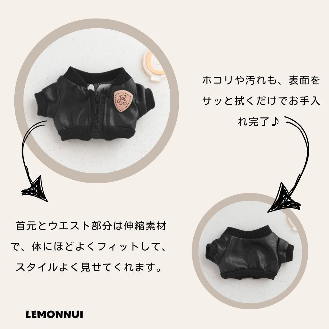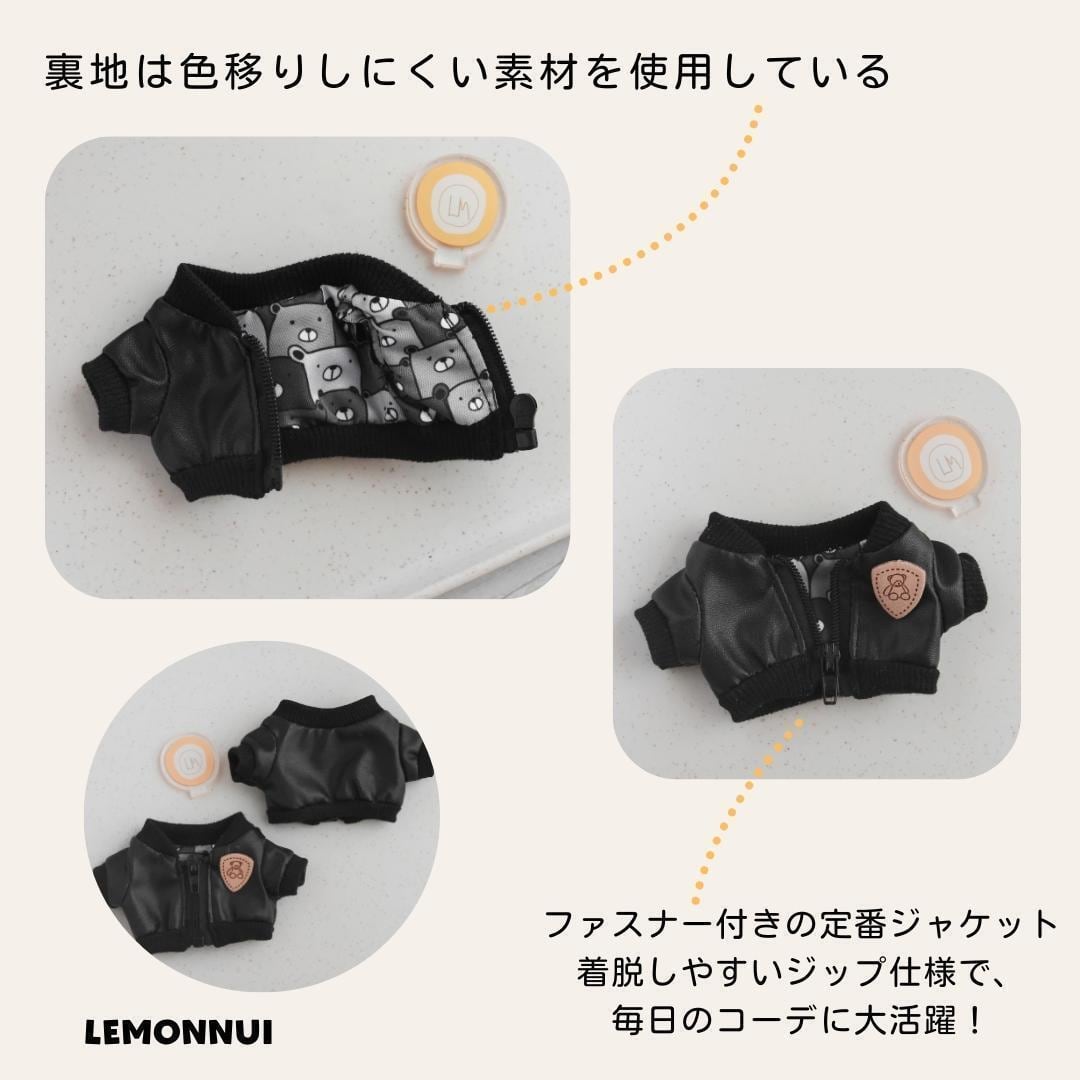 20cm 着せ替え ぬい服 レザージャケット 推し活 くま柄 綿人形 棉花娃娃 ちびぬい服 ちびぐるみ コットンドール 綿人形 cotton doll