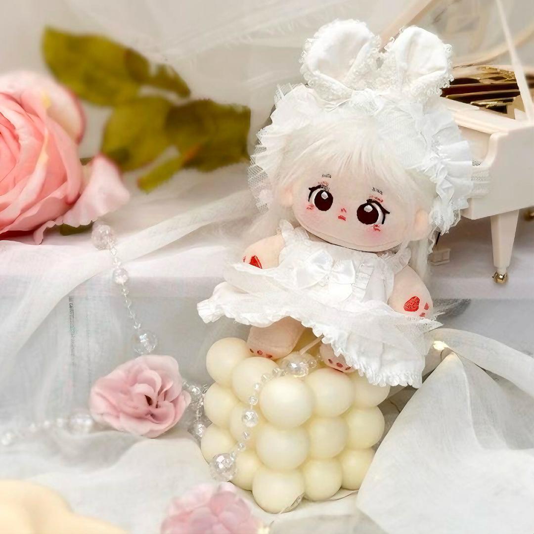 着せ替え ぬいぐるみ服 10cm 白ドレス ちびぬい 耳付き ぬい活 推し活 推しぬい 綿人形 棉花娃娃 ちびぬい服 ちびぐるみ コットンドール cotton doll-B5408