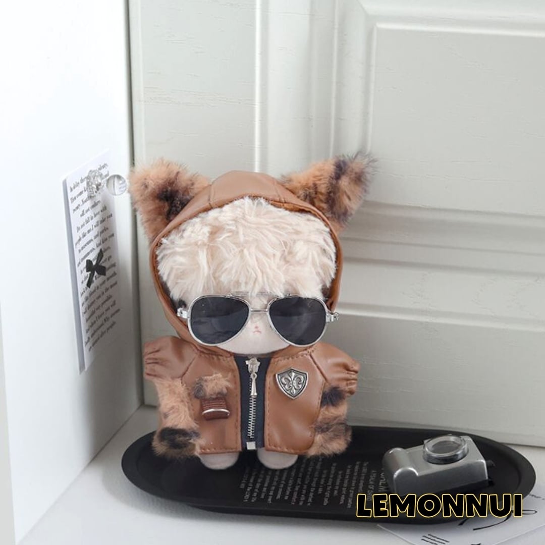 10cm ぬいぐるみ服 着せ替え ちびぬい ジャケット ブラウン かっこいい ぬい活 推し活 推しぬい 綿人形 棉花娃娃 ちびぬい服 ちびぐるみ コットンドール cotton doll-A5115